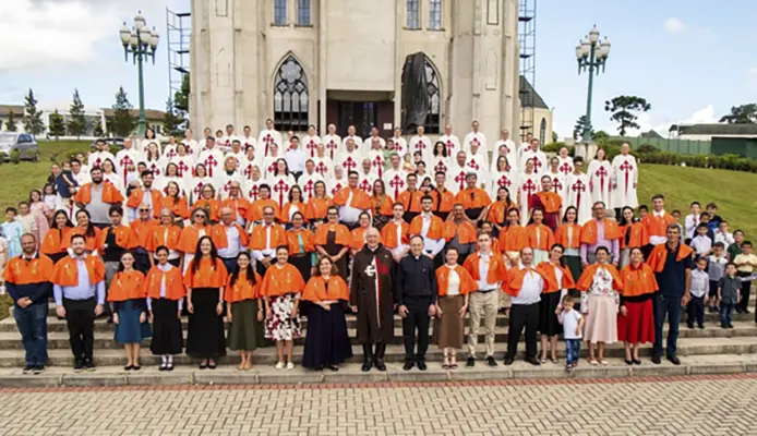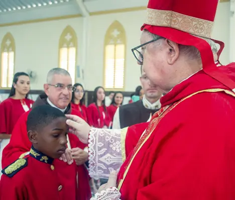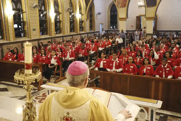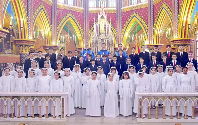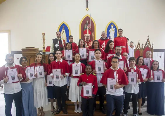 En las fotos, ceremonias de confirmación en Brasil: en la iglesia de San Salvador de Lauro de Freitas, Bahía, en la casa de la institución de Campos dos Goytacazes, Río de Janeiro, y en la parroquia de Nuestra Señora de la Divina Providencia de Belo Horizonte; y primeras comuniones: en la basílica de Nuestra Señora del Rosario de Fátima de Cotia, São Paulo y en la citada iglesia de Lauro de Freitas; así como en la capilla del monasterio de San José de Surco y en la casa de los heraldos de Lima, en Perú.