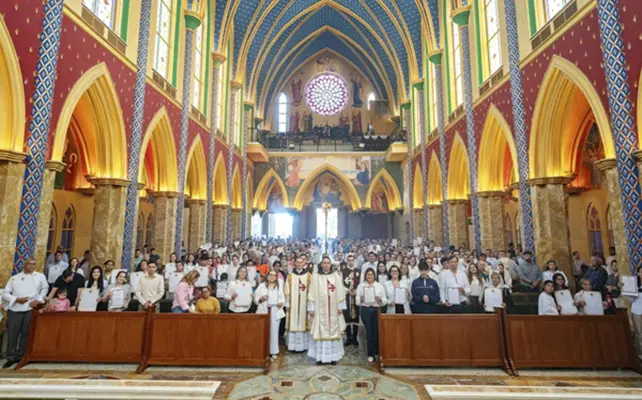 Brasil, Franco da Rocha – En el marco de las celebraciones por el 81.º aniversario de Franco da Rocha, Mons. Sergio Aparecido Colombo, obispo de Bragança Paulista, celebró una solemne eucaristía en el Parque Benedito Bueno de Moraes, animada por el coro de los seminaristas de la Sociedad Clerical de Vida Apostólica Virgo Flos Carmeli. En esta ocasión, la alcaldesa de la ciudad, Lorena Oliveira, coronó la imagen de la Virgen.