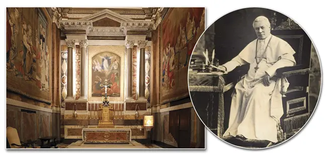 A la izquierda, Capilla Paulina – Palacio Apostólico; a la derecha, San Pío X